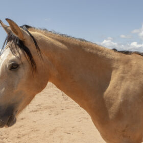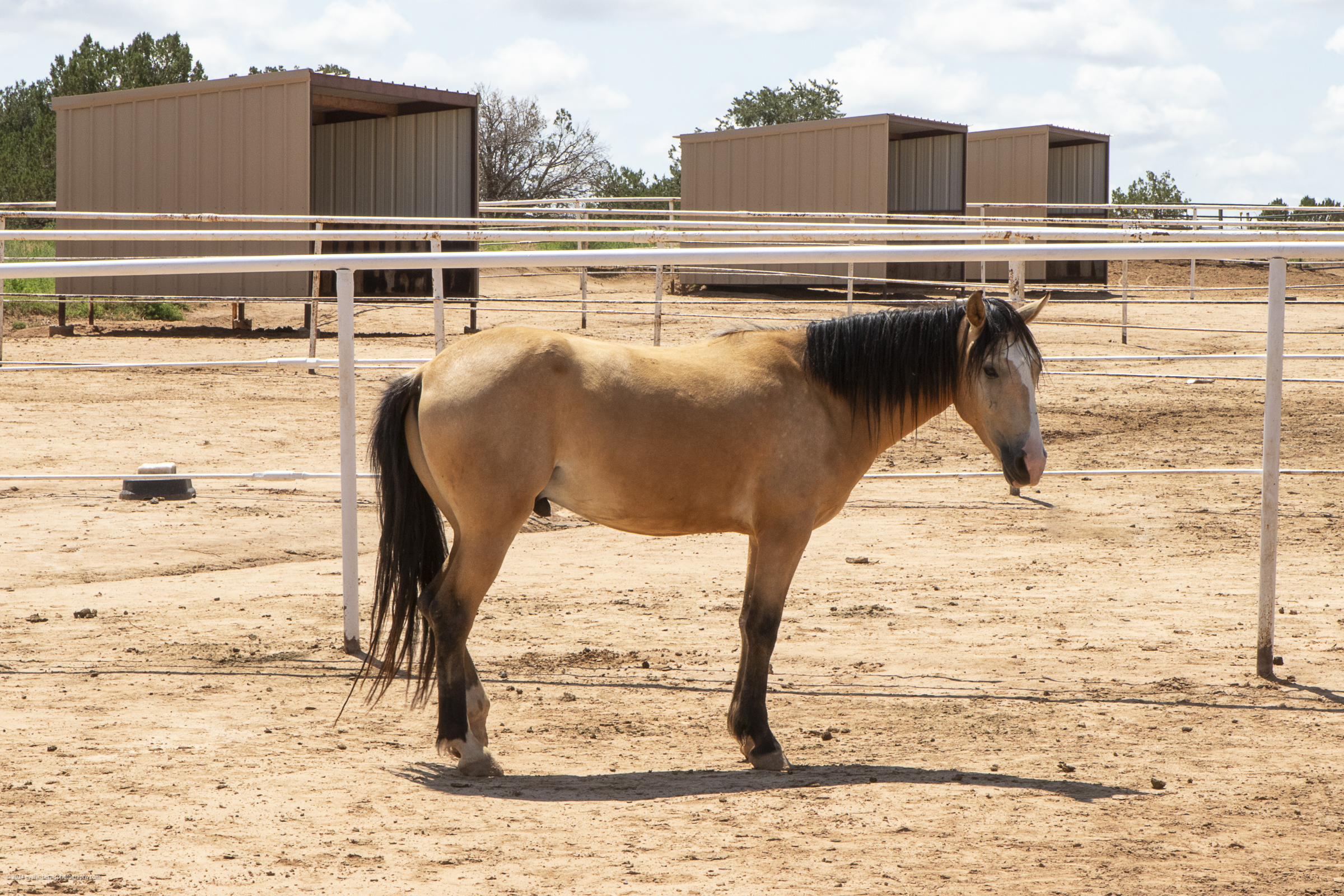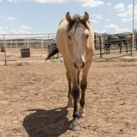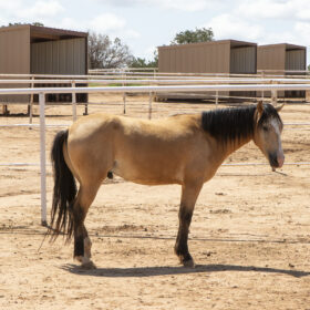 Bravo has a pleasant demeanor to him and is curious and kind. He has learned to stand quietly for the vet and farrier, load in the trailer and send over obstacles. He is a future riding prospect and we expect him to be available as a riding horse some time in 2026.