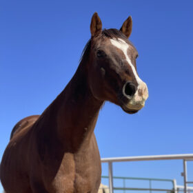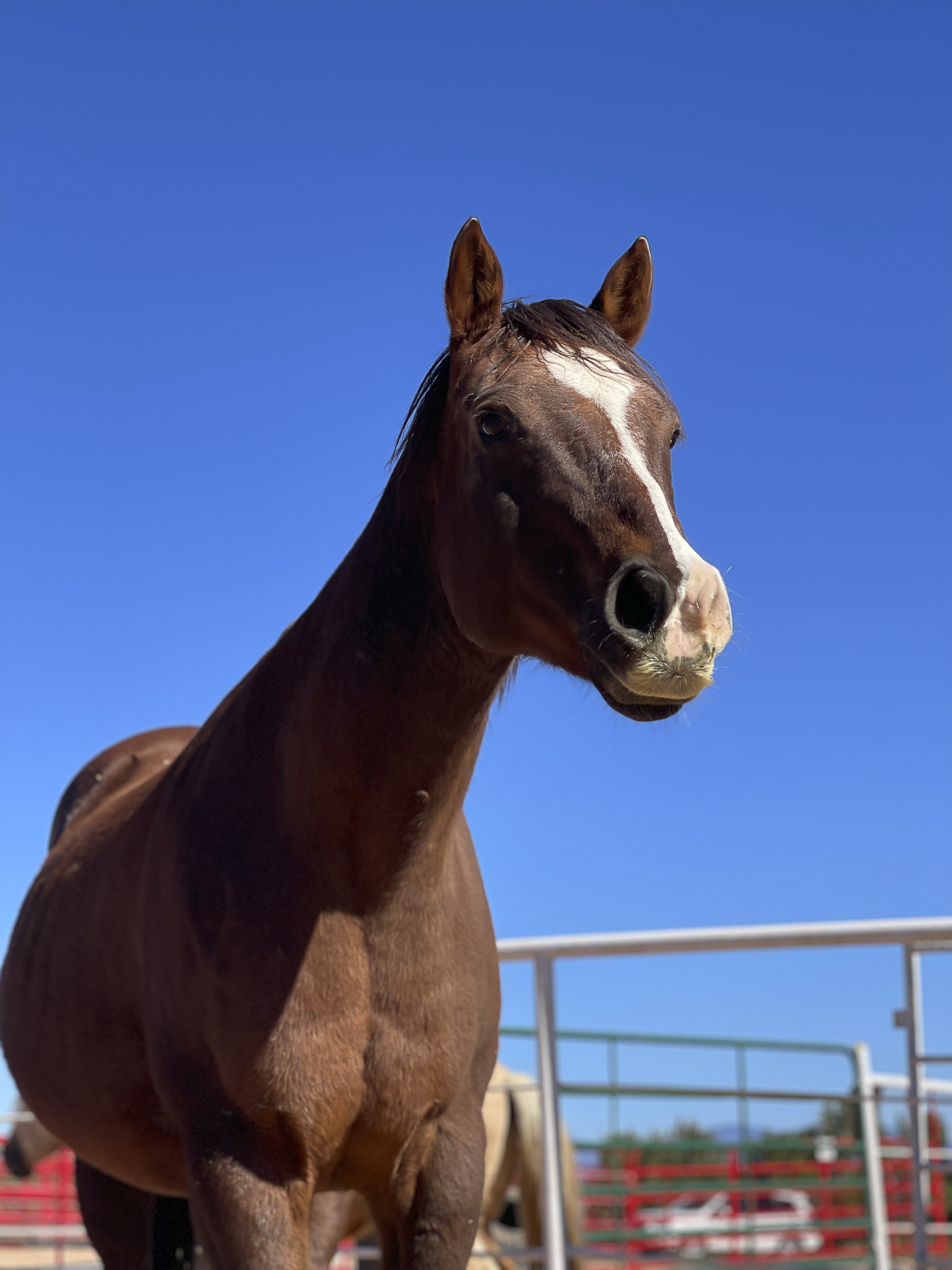 Inigo Montoya is a gentle 18-year-old bay gelding with a heart of gold and a temperament to match. Calm, kind, and endlessly cooperative, he recently completed a groundwork challenge where he eagerly embraced every new skill. This sweet soul is wonderfully social with other geldings, adores being groomed, and thrives on human connection. Inigo handles beautifully—whether it’s loading into a trailer, standing quietly for the vet or farrier, or working one-on-one with his handlers. Inigo is available for adoption as a non-riding companion horse, ready to bring warmth, companionship, and quiet joy to his new family. If you’re looking for a steady, affectionate partner to brighten your pasture, Inigo Montoya may just be the one.
