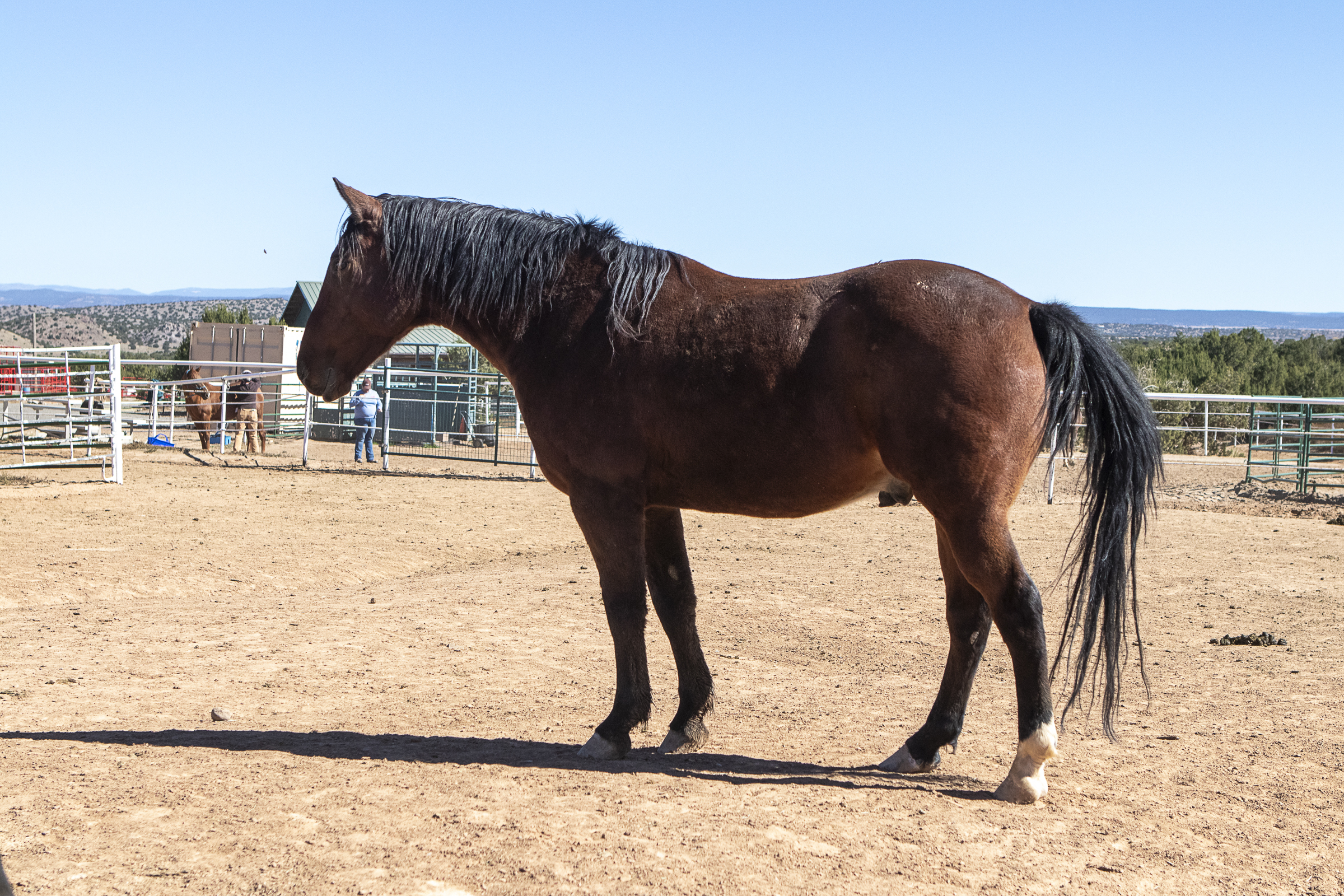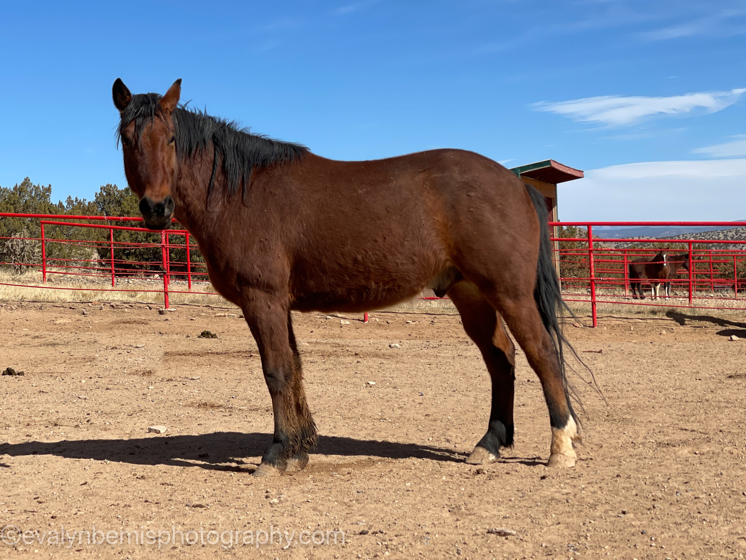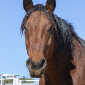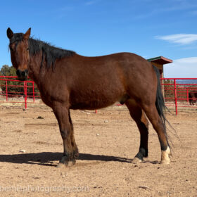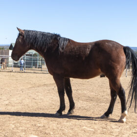 Jet is a big stout gelding that came to us through NMLB as a stray. He has started halter training, but has struggled with some lameness issues. He seems to have a good head on his shoulders and we hope to get him in saddle training if/when his soundness improves.