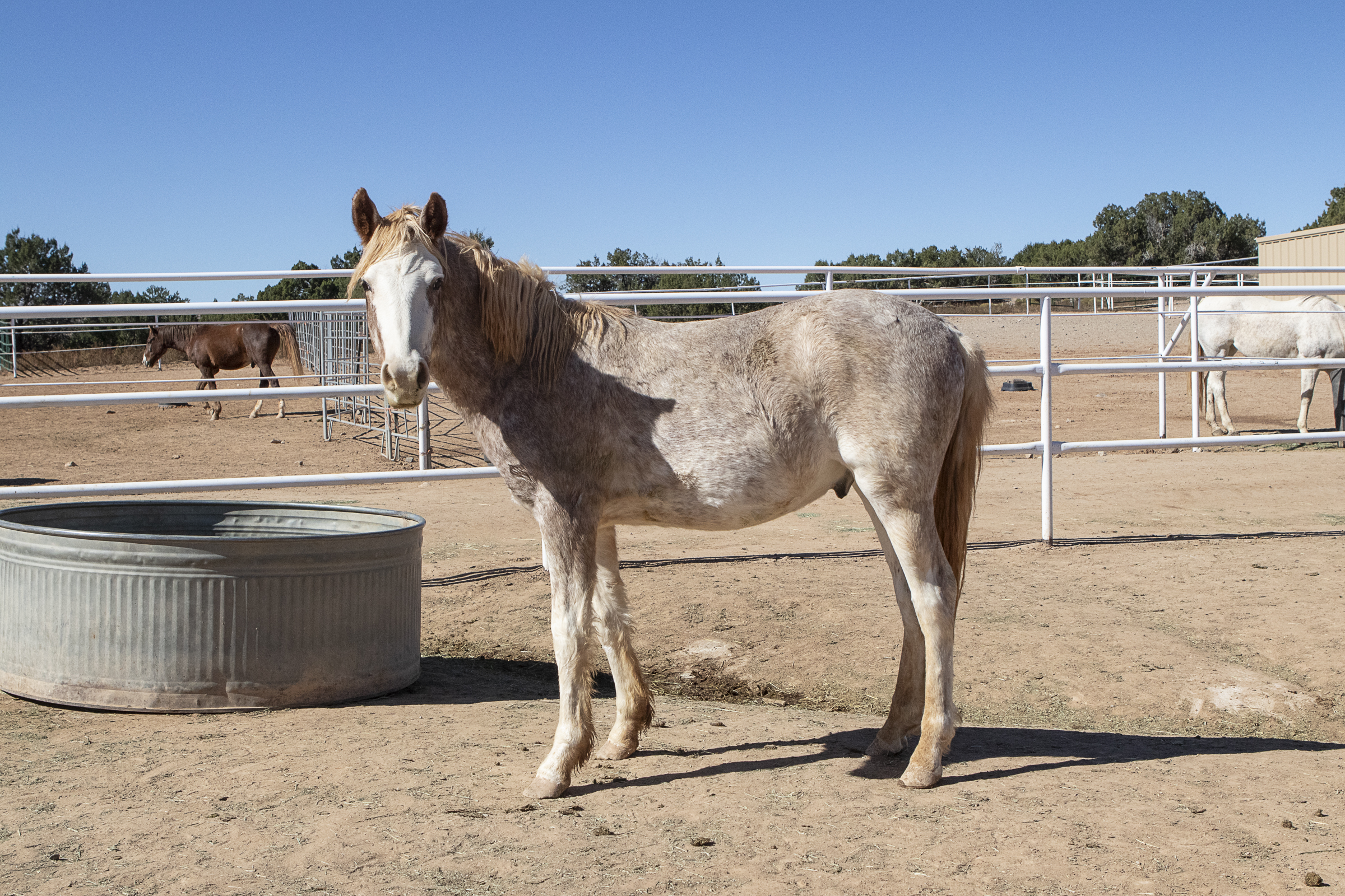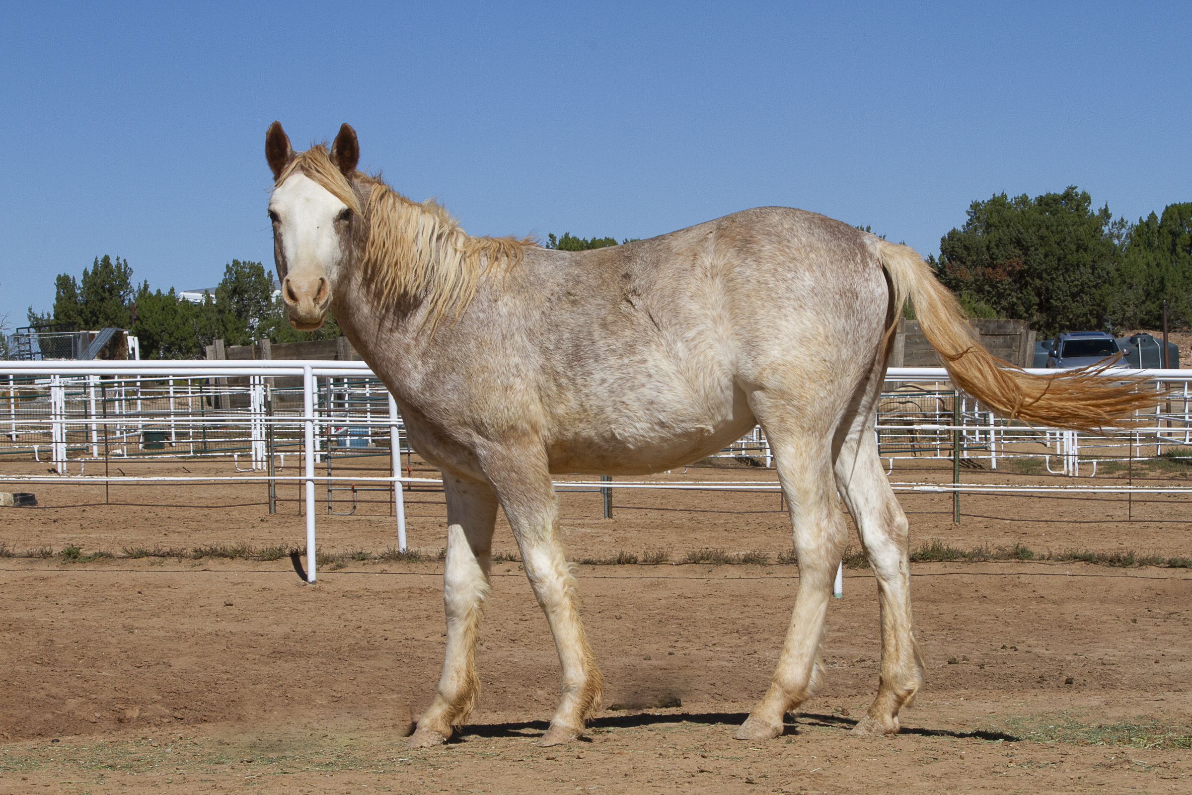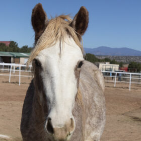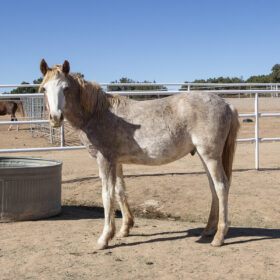Johnny is a cute little guy that had a hard start to life, having survived the devastating wild fires near Ruidoso, NM. Johnny has had some time to adjust to life at THS and has shown some curiosity about people, but is not halter trained at this time. Johnny is small for his age and we hope with good nutrition he will continue to grow.