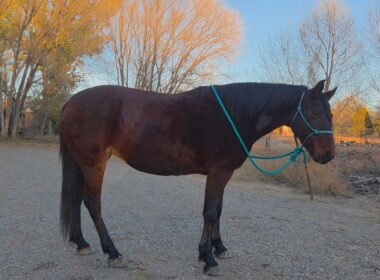 Zuma is a sweet mare that came to THS as a stray through NMLB. Zuma is currently working with our colt starter and we look forward to seeing her progress!