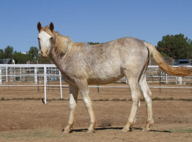 Wobbles has moved to a different part of the ranch and is enjoying his new digs. He does have trouble getting along with other horses sometimes, so he currently has the pen to himself. He enjoys his neighbors’ company, and will accept an occasional brushing from the volunteers.